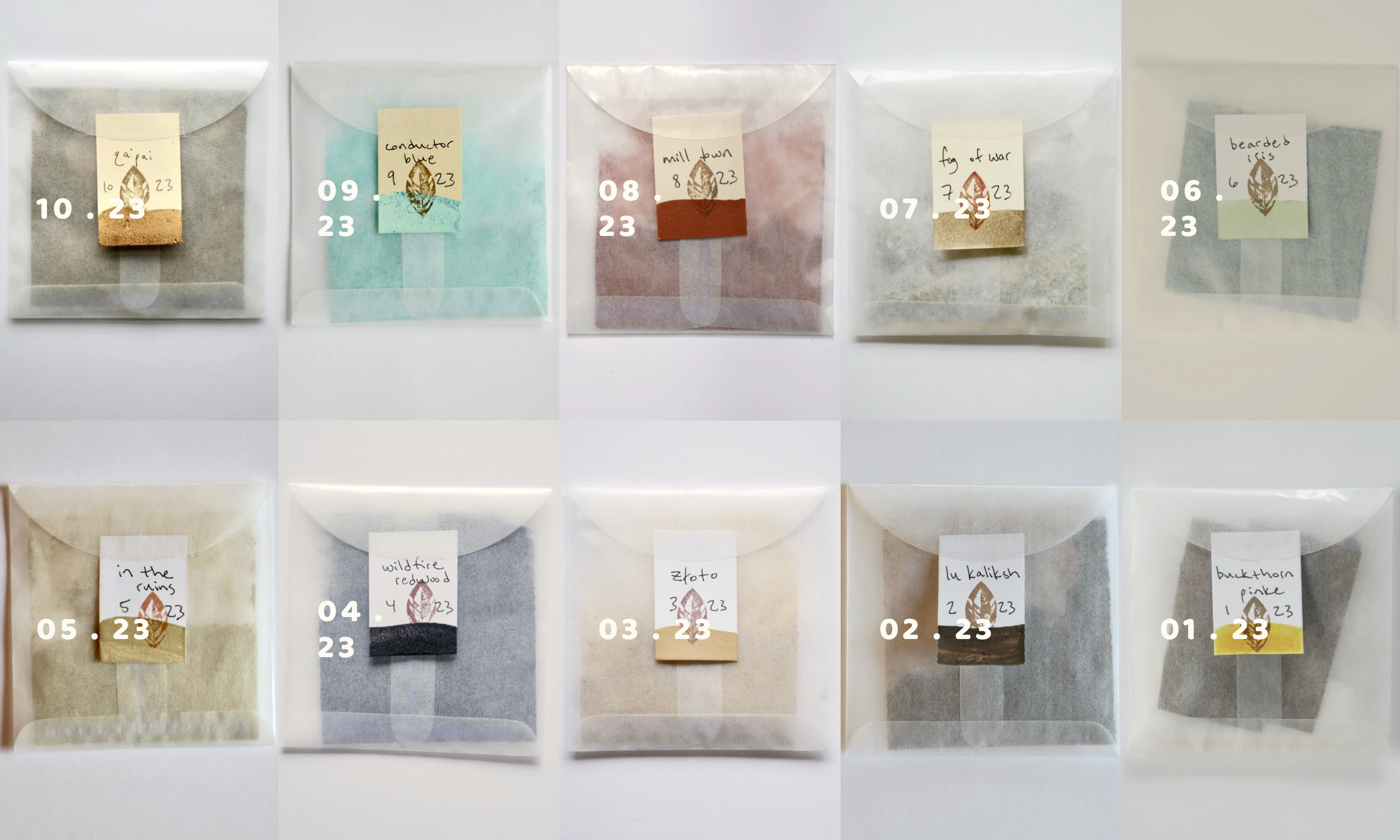 A monthly newsletter, Pied Midden, celebrated interviews with pigment practitioners, and a monthly pigment subscription, Ground Bright, funded the project through the monthly pigment offerings. Each monthly pigment was contributed by a different artist who was responsible for selecting the organization that the 22% of Ground Bright’s monthly net profits would support.