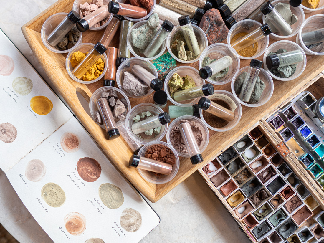 Pigment trays in Julie Kim’s studio. Photo courtesy of Julie Kim.